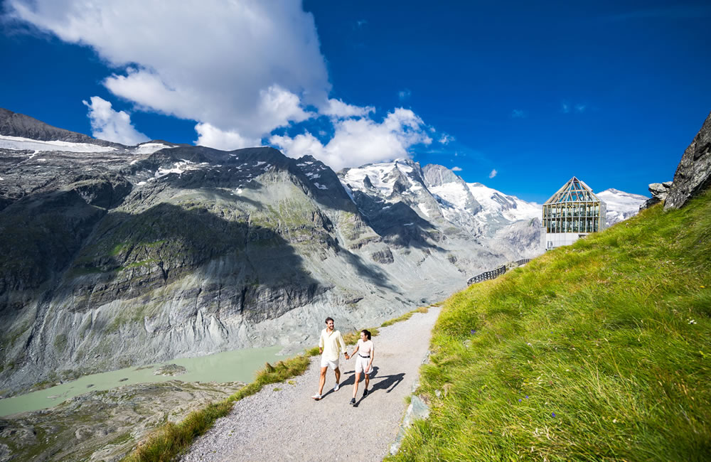 每一个转弯都展开新的画卷:山脚是绿意盎然的高山草场和茂密森林,山腰是嶙峋的岩石地带,再往上是皑皑白雪、壮丽冰川和无垠蓝天。短短车程间,您就能穿越数个气候带,看尽四季景致。旅途的终点是震撼人心的压轴美景——海拔3798米的大格洛克纳峰(Großglockner)和奥地利最大的帕斯特泽冰川(Pasterze),这壮阔景象令人叹为观止。