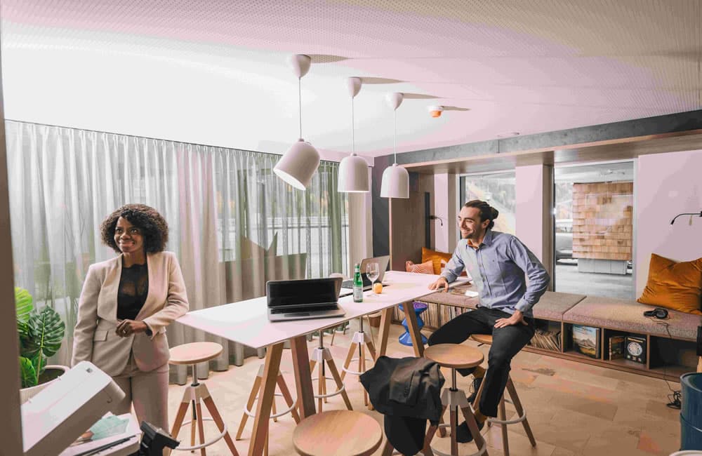 创意办公区配备先进设施的创意工作空间与运动休闲厅,实时播放精彩赛事。